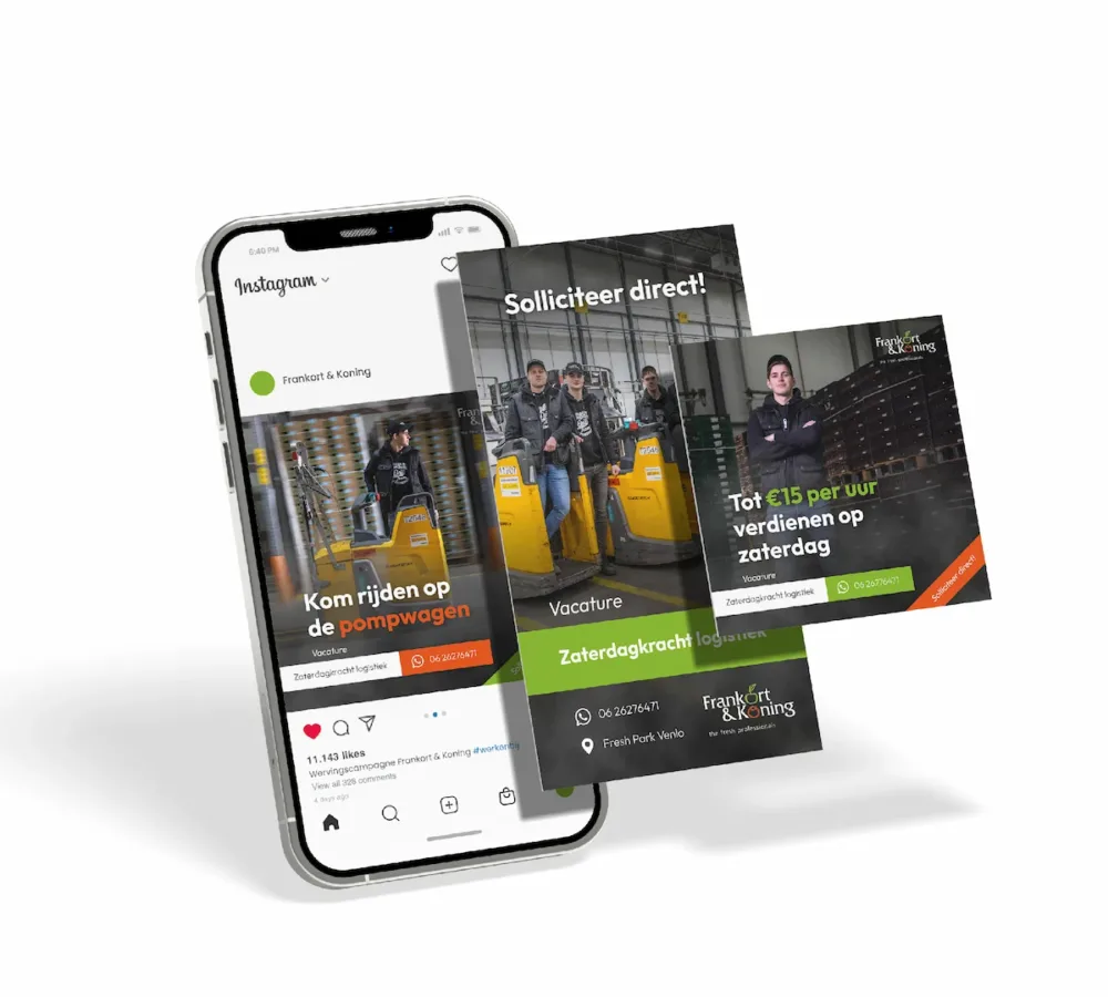 Uiteindelijk behaalden we meer dan 150.000 advertentieweergaven, 1.645 kliks naar de vacaturepagina en 500 kliks naar WhatsApp. Dit resulteerde in 11 nieuwe medewerkers die direct gesolliciteerd hadden naar aanleiding van de wervingscampagne. In korte tijd had Frankort & Koning weer voldoende personeel op de zaterdagen klaarstaan: precies op tijd voor het drukste moment van het jaar.