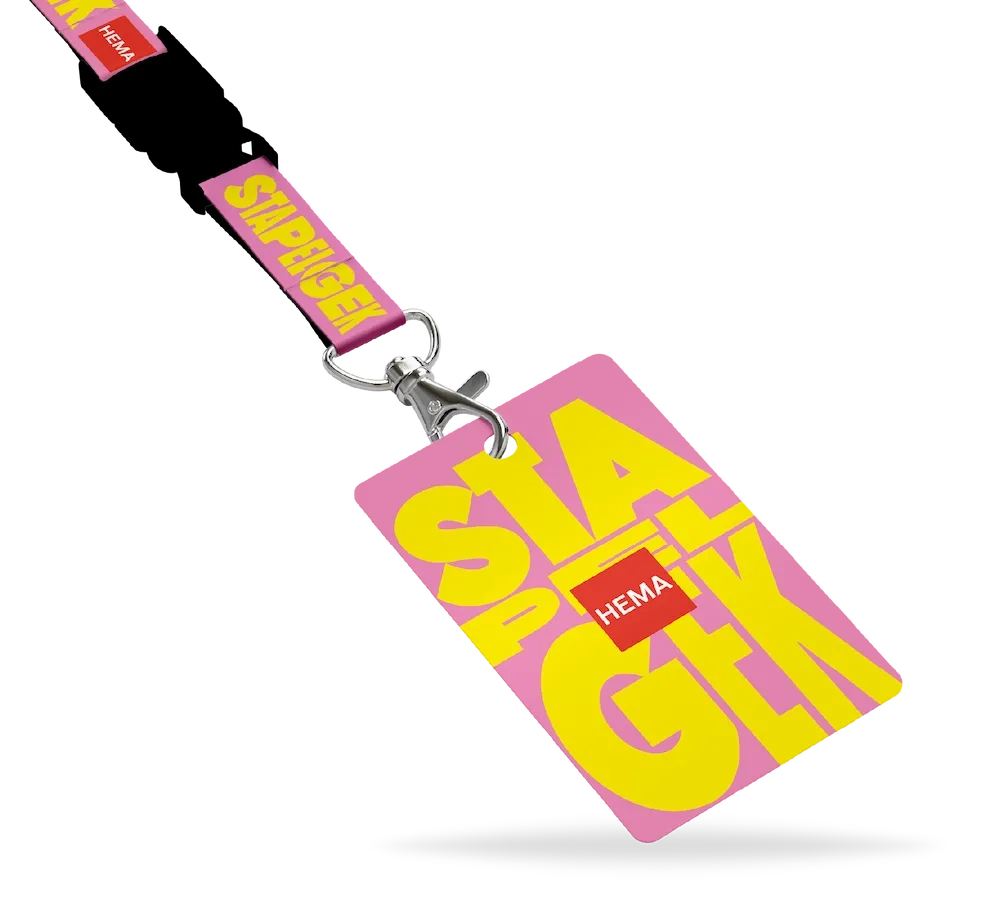 We produceerden keycords in stijl van de campagne, hingen er een badge aan en staken deze in met een gedrukte print met campagne-uiting. Vervolgens verdeelden we de juiste aantallen over pakketten en verzonden deze naar alle 800 vestigingen. En ja, dat alles onder een strakke deadline. Binnen no-time stonden alle 20.000 HEMA-collega’s in de winkels met deze actie-keykords om hun nek.