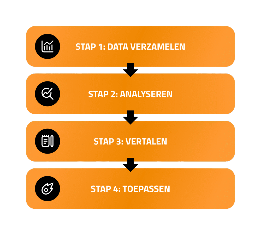 Dan is het tijd voor actie: campagnes aanscherpen, nieuwe markten verkennen, proposities verbeteren, je dienstenaanbod uitbreiden of klantreizen optimaliseren. Samen vertalen we de inzichten naar concrete stappen die je bedrijfsstrategie vooruitduwen.